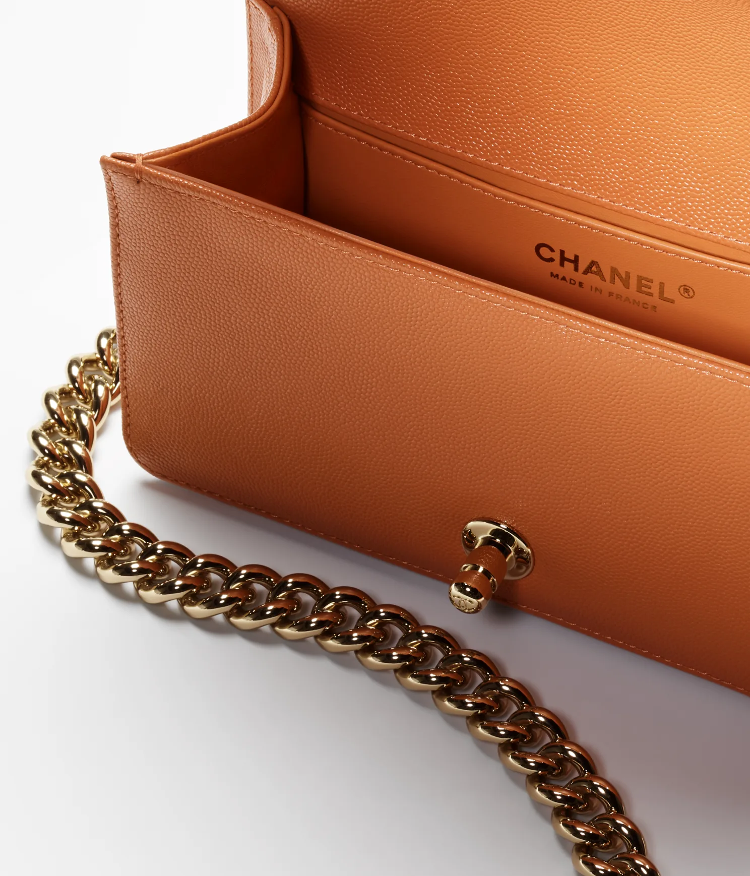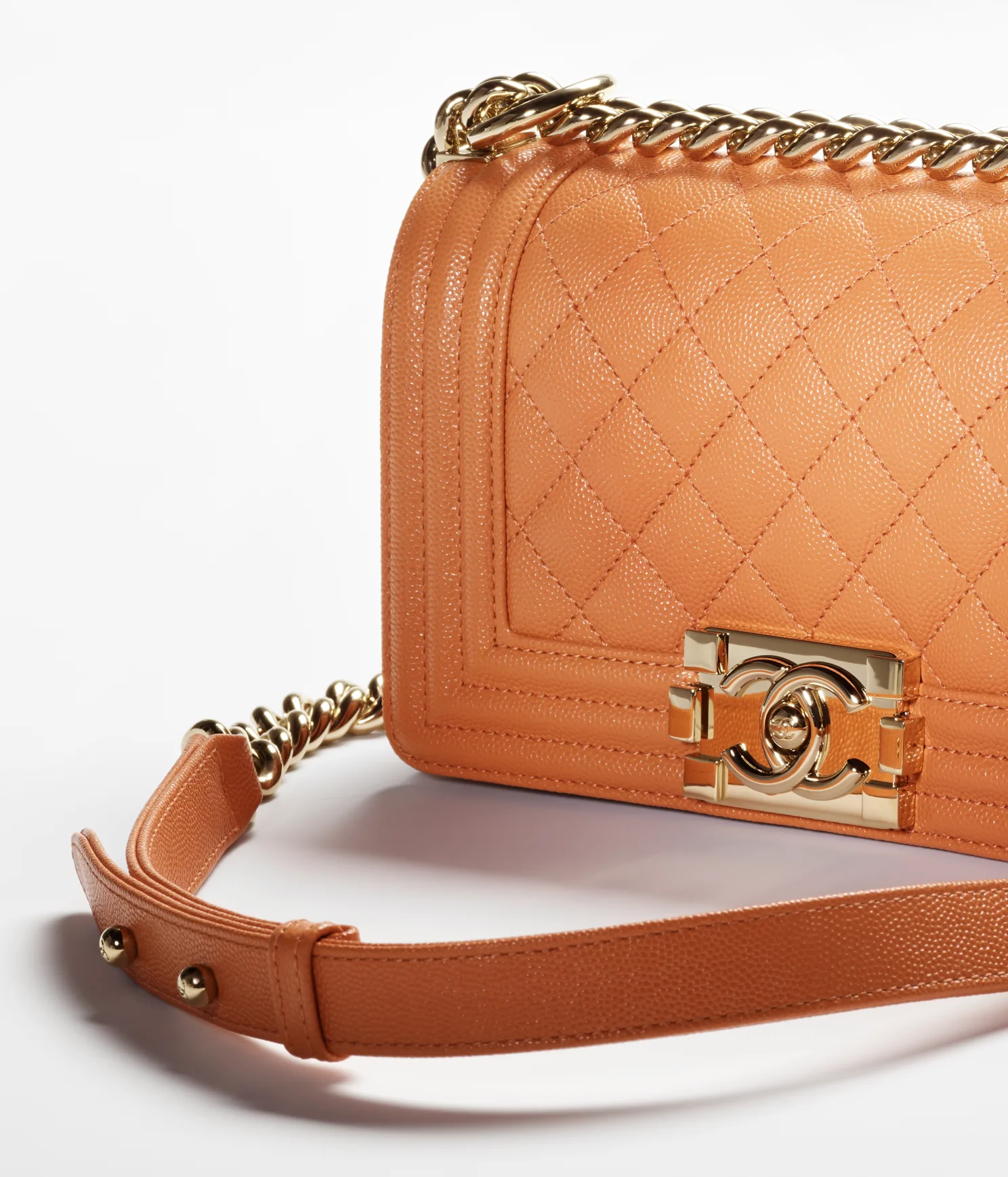 94% OFFSMALL BOY CHANEL HANDBAG Grained Calfskin & Gold-Tone Metal Orange